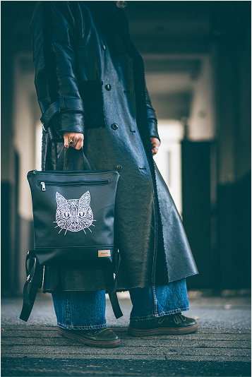 Ruksak „ANA SKY“ izrađen je od kvalitetne umjetne kože. Aplikacija je otisnuta termotiskom. Osim velikoga vanjskog prednjeg džepa sadrži i unutarnji džep na poleđini. Sintetičke naramenice su podesive.