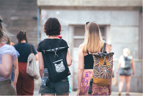 Ruksak „SJEDILA SKY“ izrađen je od kvalitetne umjetne kože i dekor platna. Osim vanjskog prednjeg džepa sadrži i unutarnji džep na leđnom djelu. Naramenice su sintetičke i podesive.